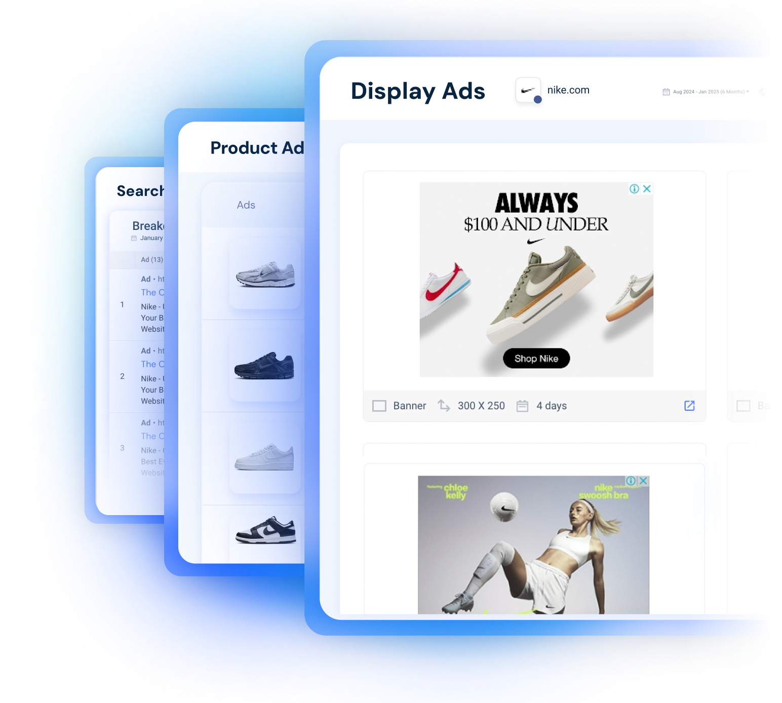 View competitor ads across search, display and YouTube to see what’s already performing well. And find new ways to stand out.