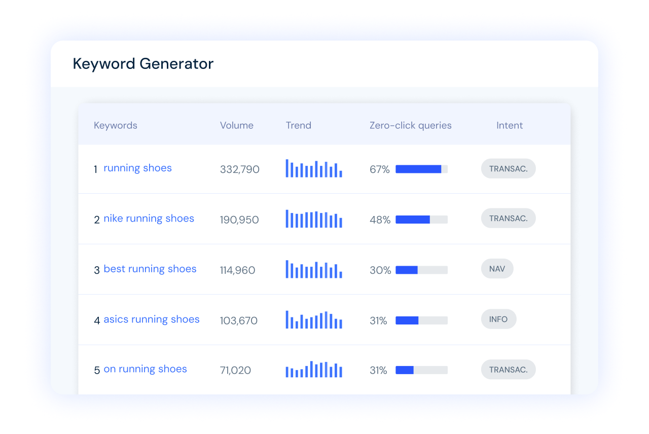 | Keywords | 28 Days Vol. | Intent | CPC | Zero-Click | KD |